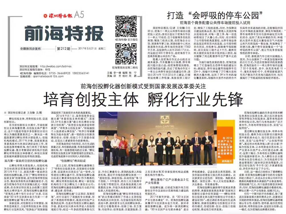 深圳特区报:前海创投孵化器「培育创投主体,孵化行业先锋」