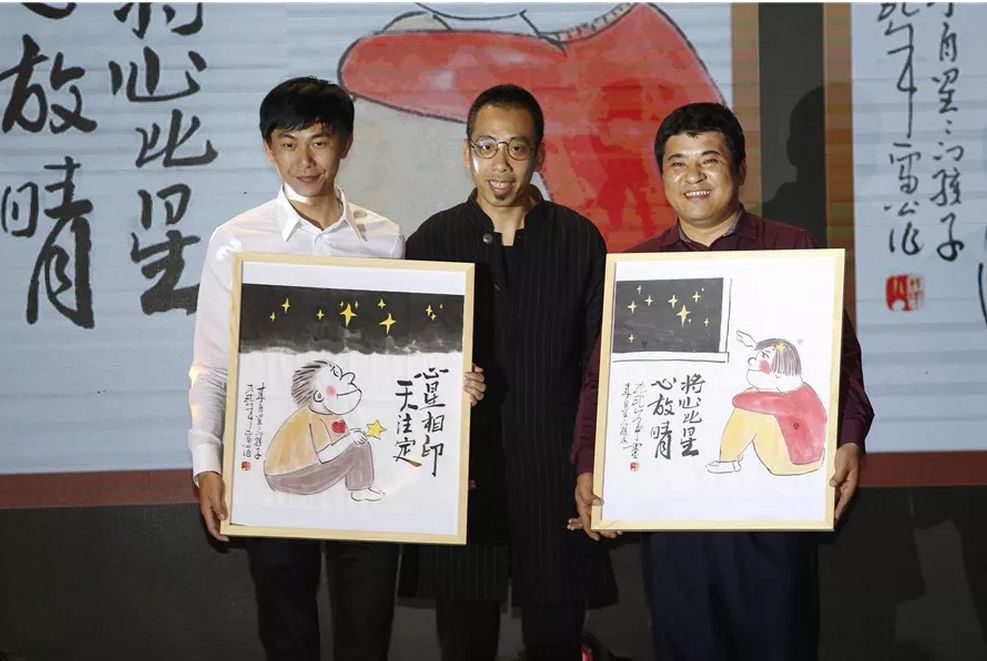 前海创投孵化器·前海创投班2期毕业晚会上,画家雷公送出爱心画作“心星相印天注定”与“将心比星心放晴”